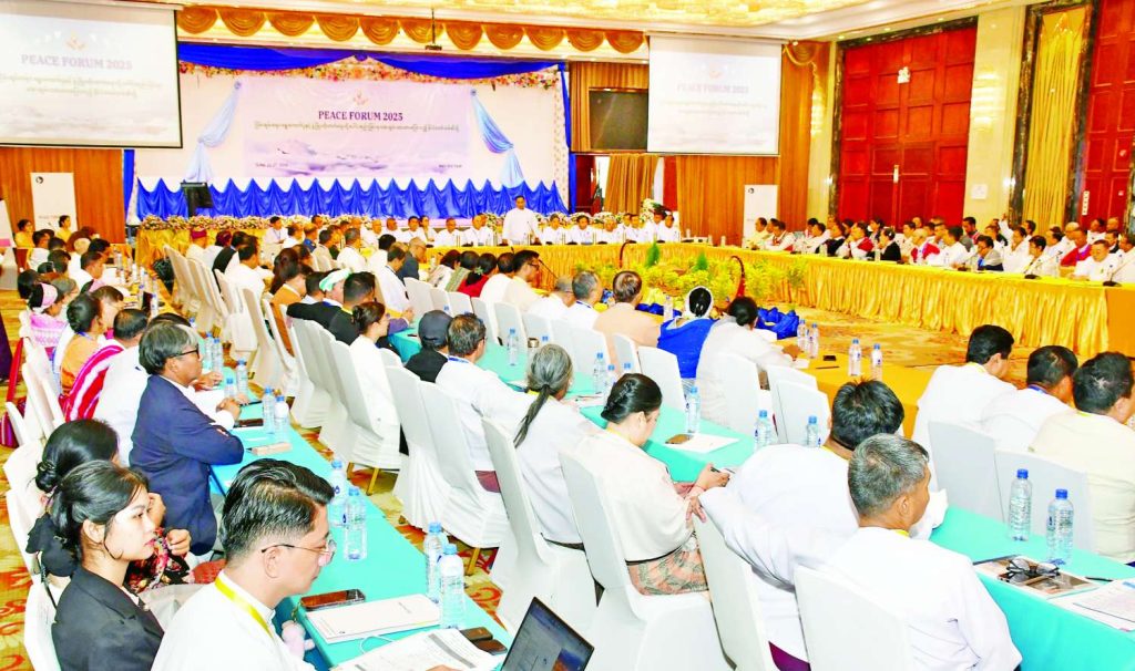 “ငြိမ်းချမ်းရေး၊ ရွေးကောက်ပွဲနှင့် ဖွံ့ဖြိုးတိုးတက်ရေးတို့ ပေါင်းစည်းခြင်းမှ အေးချမ်းသာယာဝပြောသည့် နိုင်ငံတော်သစ်ဆီသို့” သုံးသပ်ဆွေးနွေးပွဲ ငြိမ်းချမ်းရေးဖိုရမ် – Peace Forum 2025 ကို ၂၇-၆-၂၀၂၅ ရက်တွင် နေပြည်တော်ရှိ မင်္ဂလာသီရိဟိုတယ်ခန်းမ၌ တတိယနေ့အဖြစ် ဆက်လက်ကျင်းပသည်။