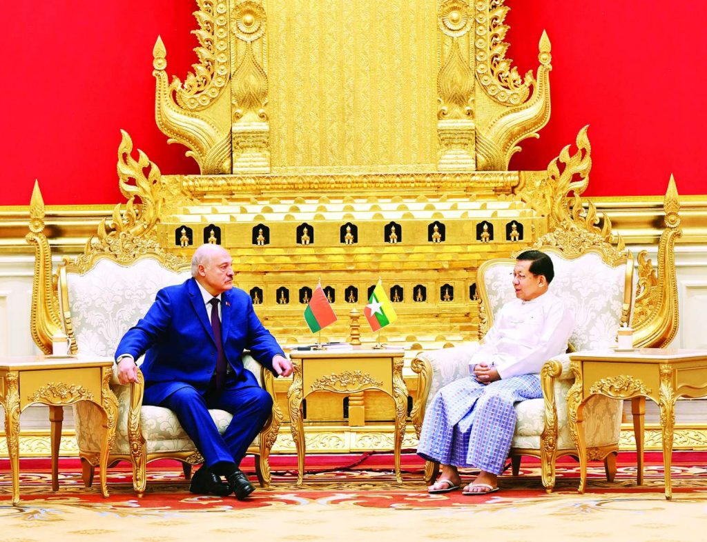 ထို့နောက် နိုင်ငံတော်ယာယီသမ္မတ နိုင်ငံတော်လုံခြုံရေးနှင့်အေးချမ်းသာယာရေးကော်မရှင်ဥက္ကဋ္ဌနှင့် ဘယ်လာရုစ်သမ္မတနိုင်ငံသမ္မတတို့သည် နှစ်နိုင်ငံအကြား စီးပွားရေးဆိုင်ရာ ပူးပေါင်းဆောင်ရွက်မှုများနှင့် ရင်းနှီးမြှုပ်နှံမှုများကို ဆက်လက်တိုးမြှင့် ဆောင်ရွက်သွားနိုင်မည့်အခြေအနေများ၊ ပညာရေး၊ ကျန်းမာရေး၊ စက်မှု၊ စိုက်ပျိုးမွေးမြူရေးနှင့် စစ်ဘက်နည်းပညာဆိုင်ရာစသည့် နယ်ပယ်အသီးသီးတွင် ပူးပေါင်းဆောင်ရွက်မှုများကို မြှင့်တင်ဆောင်ရွက်သွားမည့်အခြေအနေများ၊ မြန်မာနိုင်ငံအစိုးရအနေဖြင့် နိုင်ငံတကာနှင့် တစ်ကမ္ဘာလုံးကို အန္တရာယ်ပေးနေသည့် အွန်လိုင်းလိမ်လည်မှုများ၊ အွန်လိုင်းလောင်းကစားမှုများ တိုက်ဖျက်ရေးလုပ်ငန်းစဉ်များကို အမျိုးသားရေးတာဝန်တစ်ရပ်အနေဖြင့် အလေးထားတိုက်ဖျက်ဆောင်ရွက်လျက်ရှိမှု၊ ယခုအခါ မြန်မာ-ထိုင်းနယ်စပ်တွင်ရှိနေသည့် Online လောင်းကစားမှုများသည် သမားရိုးကျမဟုတ်သည့် လုံခြုံရေးဆိုင်ရာစိန်ခေါ်ချက်ဖြစ်သဖြင့် သတိထားဆောင်ရွက်လျက်ရှိမှု၊ ၎င်းလုပ်ငန်းသည် ကိုဗစ်-၁၉ ကာလနောက်ပိုင်း ၂၀၂၀ ပြည့်နှစ်မှ စတင်ကျယ်ပြန့်လာမှု၊ ၂၀၂၁ ခုနှစ် မြန်မာနိုင်ငံတွင် နိုင်ငံရေးမတည်ငြိမ်မှုဖြစ်လာချိန်၌ နယ်စပ်ဒေသများတွင် တည်ငြိမ်မှုနှင့် တရားဥပဒေစိုးမိုးမှုလျော့နည်းလာသည်ကို အခွင့်ကောင်းယူပြီး တရားမဝင်လက်နက်ကိုင်အဖွဲ့များနှင့်ပူးပေါင်း၍ အွန်လိုင်းလောင်းကစားမှုကို အခြေချခဲ့မှု၊ အွန်လိုင်းလောင်းကစားမှုပြုလုပ်သည့်နေရာများမှ ဖမ်းဆီးရမိသူ နိုင်ငံပေါင်း ၅၂ နိုင်ငံမှ ပြည်ပနိုင်ငံသား ၇၀၀၀၀ နီးပါးခန့်ကို ထိန်းသိမ်း၍ မိခင်နိုင်ငံသို့ပြန်ပို့လျက်ရှိမှု၊ ကျန်ရှိသည့်ပြည်ပနိုင်ငံသား ၁၀၀၀ ခန့်ကိုလည်း ပြန်ပို့ရန် ဆောင်ရွက်လျက်ရှိမှုနှင့် အွန်လိုင်းလိမ်လည်လောင်းကစားမှုများ လုံးဝပြန်လည်အခြေမချနိုင်စေရေး၊ ဒုစရိုက်လုပ်ငန်းများ ထပ်မံမလုပ်ဆောင်နိုင်စေရေးအတွက် တရားမဝင်ဆောက်လုပ်ထားသည့် အဆောက် အအုံများကိုလည်း အပြီးတိုင်ဖျက်ဆီးဖြိုချမှုများ ဆောင်ရွက်လျက်ရှိပြီး အမြစ်ပြတ်ချေမှုန်းသွားမည့်အခြေအနေများ၊ မြန်မာနိုင်ငံတွင် ပါတီစုံဒီမိုကရေစီအထွေထွေ ရွေးကောက်ပွဲတစ်ရပ်ကို မကြာမီကာလအတွင်း ကျင်းပပြုလုပ်သွားမည်ဖြစ်ပြီး ဘယ်လာရုစ်နိုင်ငံမှလည်း လေ့လာစောင့်ကြည့်ရေးအဖွဲ့ စေလွှတ်သွားမည့်အခြေအနေများ၊ နှစ်နိုင်ငံအကြား ချစ်ကြည်ရင်းနှီးမှုနှင့် ပူးပေါင်းဆောင်ရွက်မှုများကို ကဏ္ဍပေါင်းစုံ၌ ဆက်လက်တိုးမြှင့်ဆောင်ရွက်သွားမည့်အခြေအနေများနှင့်စပ်လျဉ်း၍ ရင်းနှီးပွင့်လင်းစွာ အမြင်ချင်းဖလှယ်ဆွေးနွေးကြသည်။